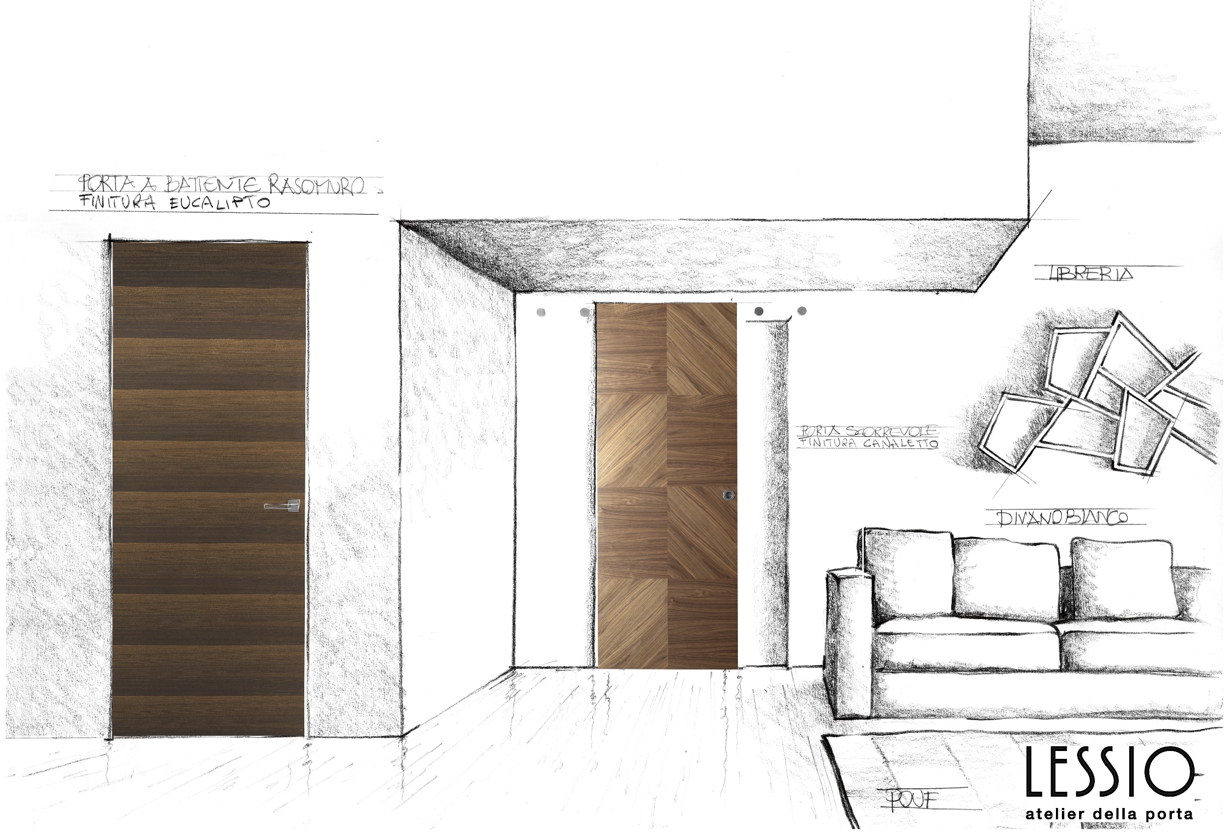 Il nostro stile, la nostra visione del design delle porte. Concepiamo le porte come degli elementi d’arredo che si distinguono in ogni ambiente. Dei prodotti progettati con materiali innovativi. Vetro, roccia, marmo, cemento, pelle, legno, sono le finiture che vengono proposte in questa linea.
